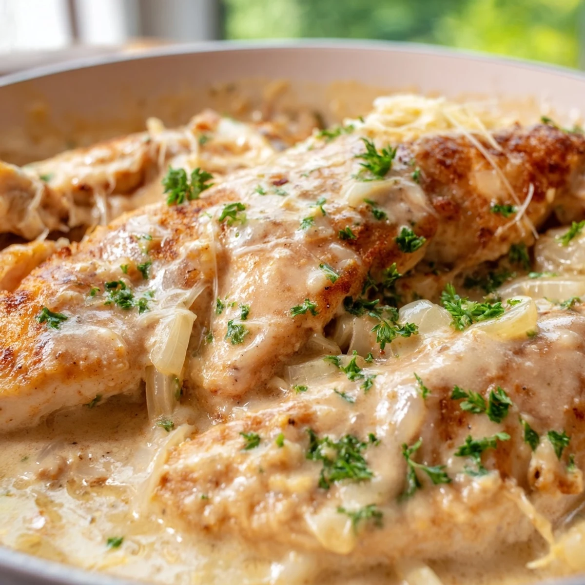 Experience tender chicken breasts seared to golden perfection, then enveloped in a velvety garlic-parmesan cream sauce. This European-inspired main dish comes together in just 35 minutes, making it ideal for busy weeknights yet elegant enough for entertaining. The rich, savory flavors develop beautifully as the chicken finishes cooking in the sauce, creating a luxurious dinner that pairs perfectly with mashed potatoes, pasta, or steamed vegetables.