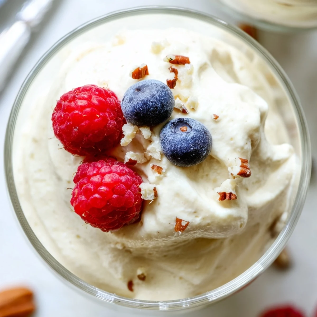 - Spoon into pretty glasses and top with berries and nuts. You can eat this right away or chill it for a couple hours if you prefer a firmer texture.